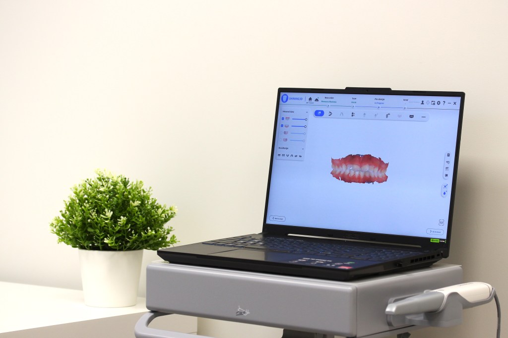 Интраоралният скенер е една невероятна технология, която отваря много възможности пред ортодонта и неговите пациенти. Скенерът прави много на брой висококачествени снимки за много кратко време на зъбите на пациента и по този начин се създава 3D изображение в дигитален формат. Използването на интраорален скенер почти напълно заменя използването на алгинат и силикон, което е значително по-комфортно за пациента. В същото време сканирането на зъбите е по-бързо в сравнение с взимането на отпечатъци. Сканирането с интраорален скенер също така дава по-точен „отпечатък“ на зъбите на пациента и успеваемостта е 100%.